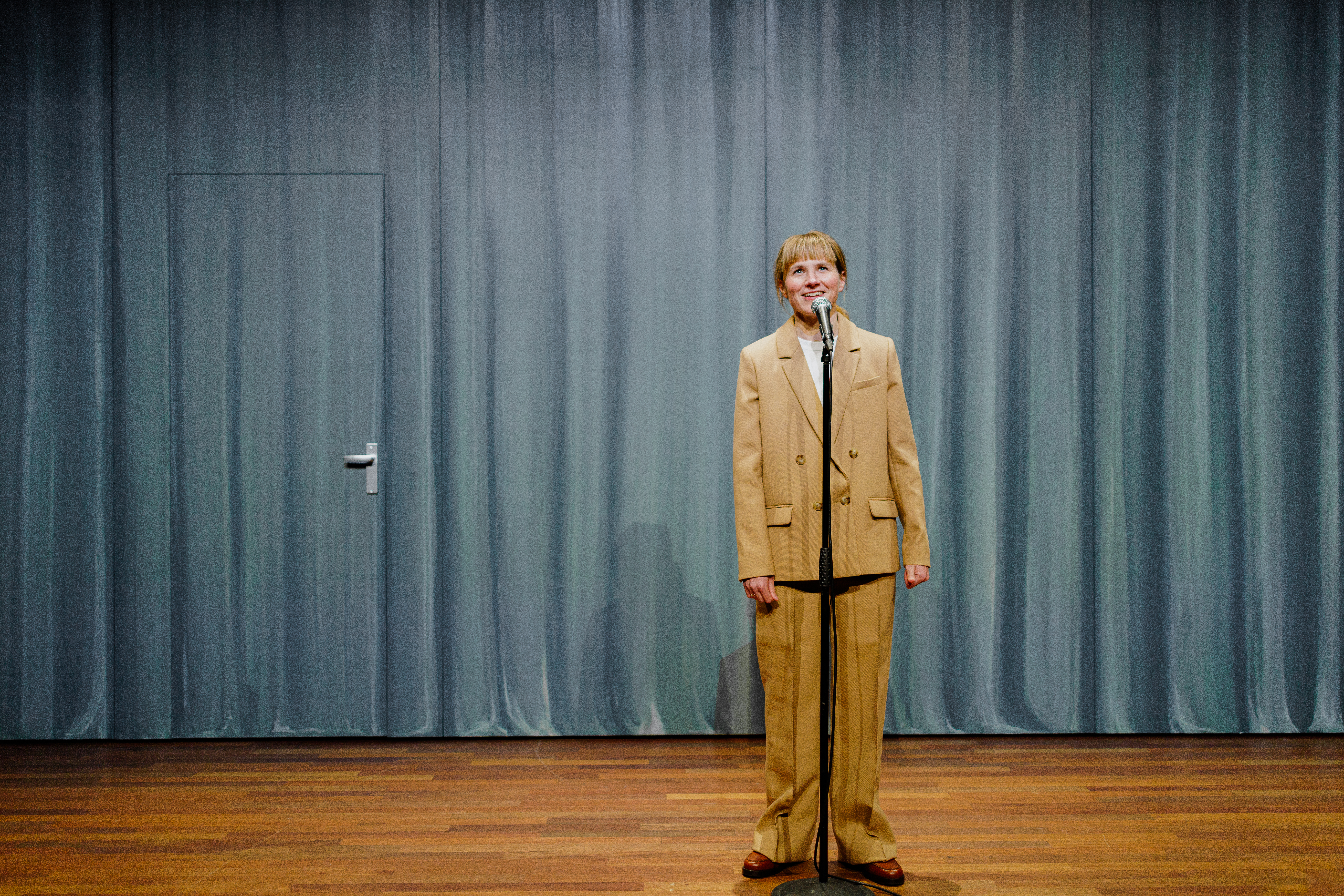 Een stukje naar de mensen toe is een stand-up voorstelling waarin Rebekka de Wit zichzelf en haar consumptiegedrag onder de loep neemt.